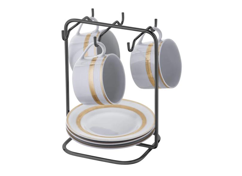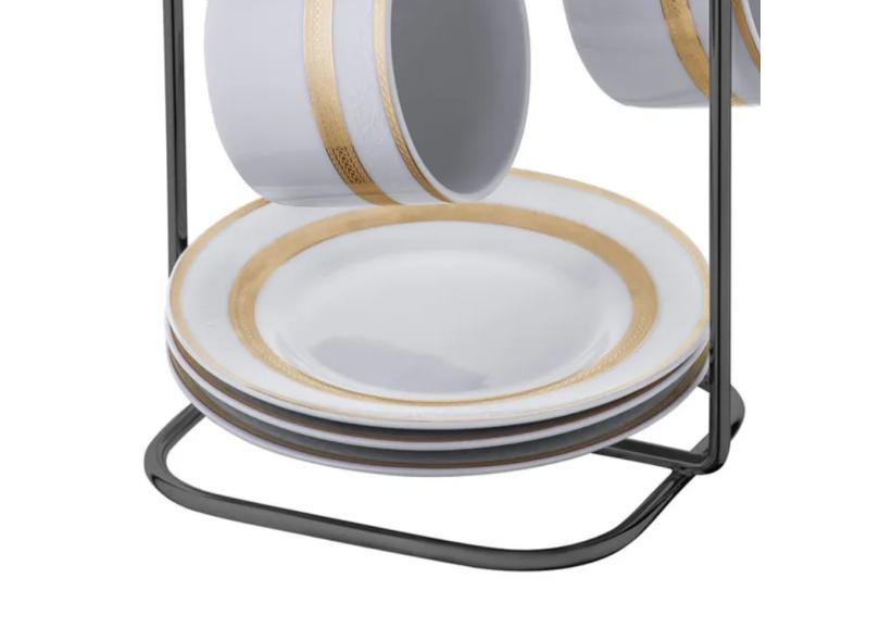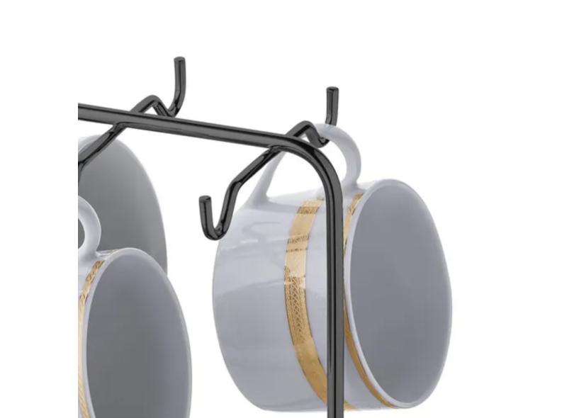 Suporte Para Xicaras E Pires Vertical De Mesa 6 Peças Em Aço Carbono Ônix