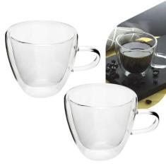 Xícara parede dupla de vidro café 120ml 2 Peças